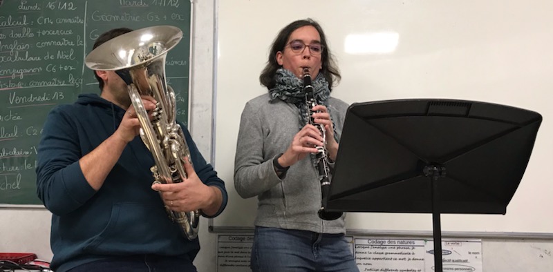 Sébastien, professeur au conservatoire, est venu présenter son instrument à la classe.